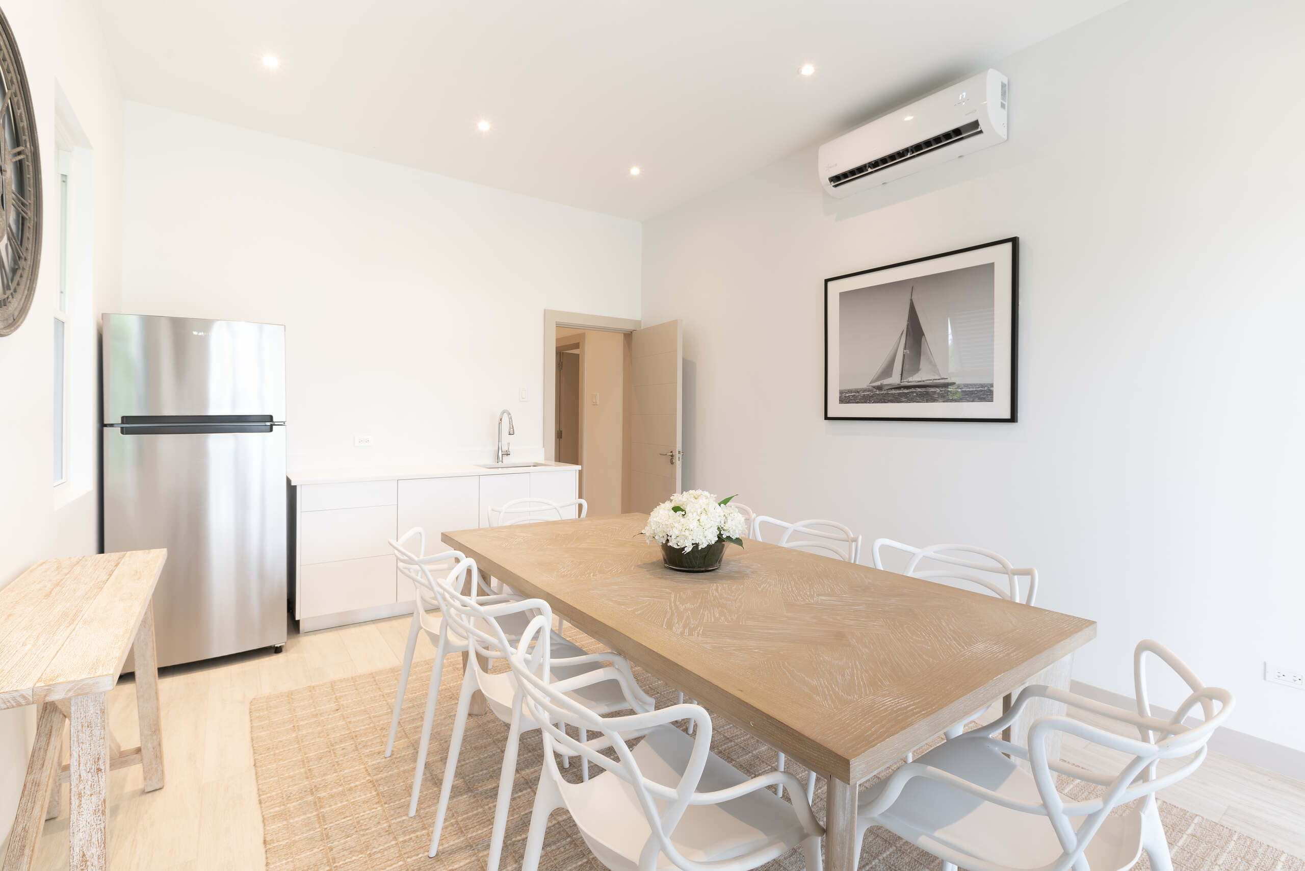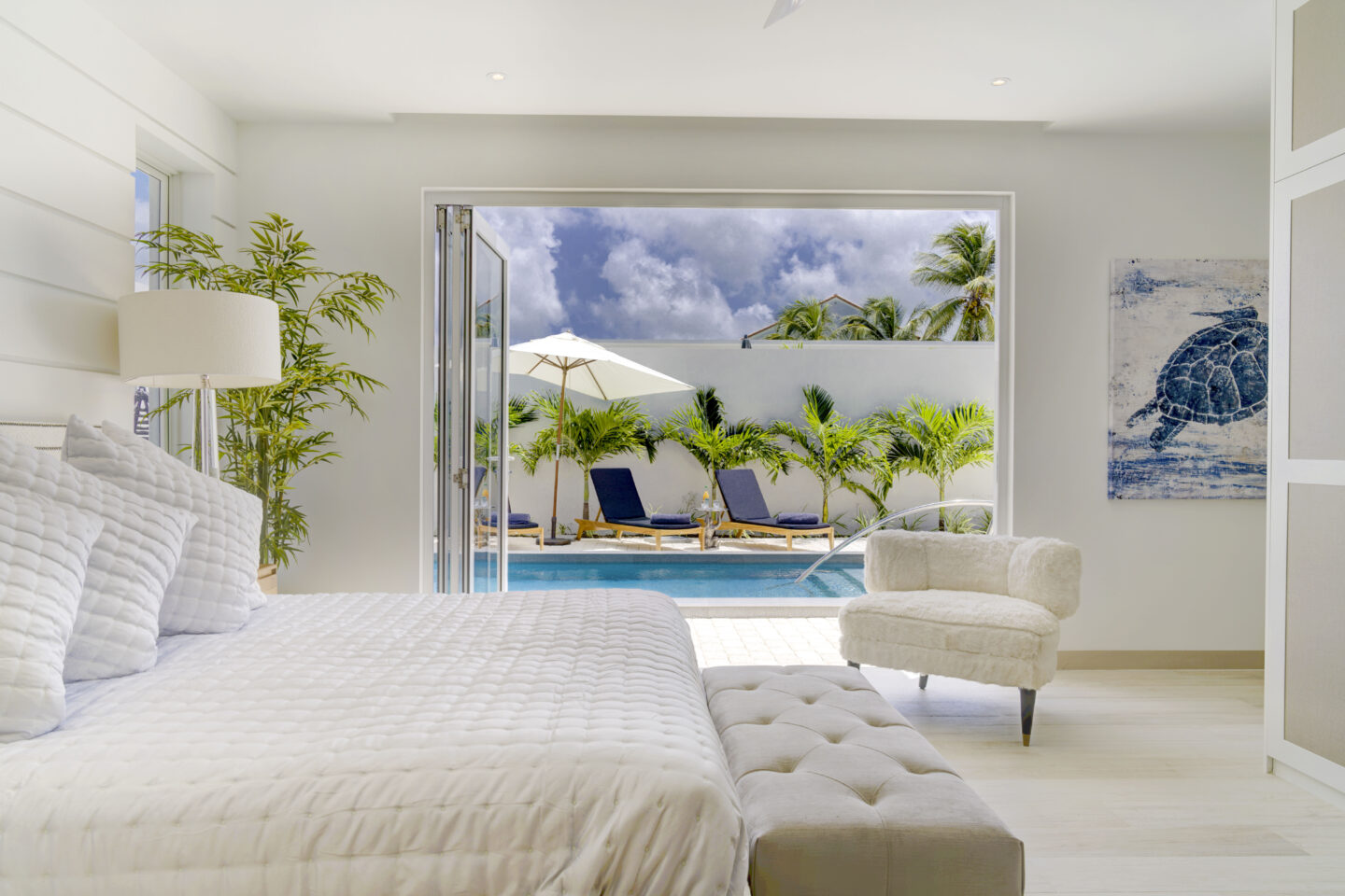Featuring four generously sized air-conditioned bedrooms, three en-suite bathrooms and a further family bathroom The White House provides comfort and convenience throughout, even extending in to the wonderful air-conditioned open plan living area. Relax in the open-plan living spaces of The White House, where retractable doors seamlessly connect indoors and outdoors, allowing the refreshing Caribbean breeze to flow in. Additionally, all bedrooms, the living room, and the veranda are equipped with ceiling fans, ensuring a continuous and pleasant Caribbean breeze throughout the entire property.